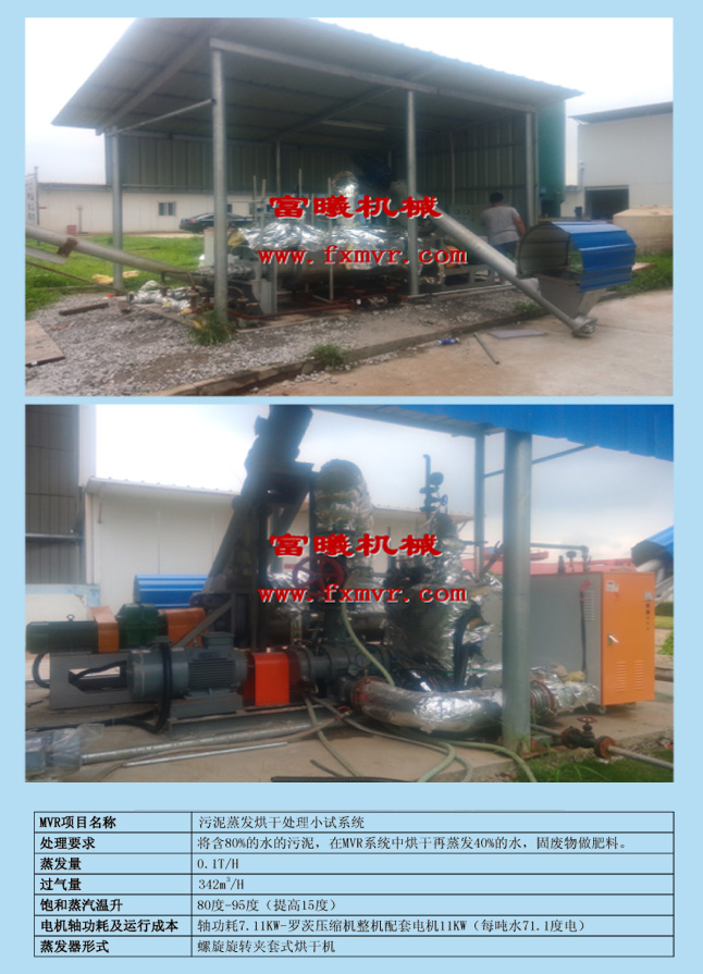 处 理 要 求:将含80%的水的污泥,在MVR系统中烘干再蒸发40%的水,固废物做肥料。