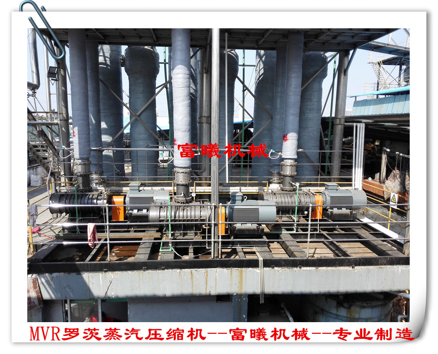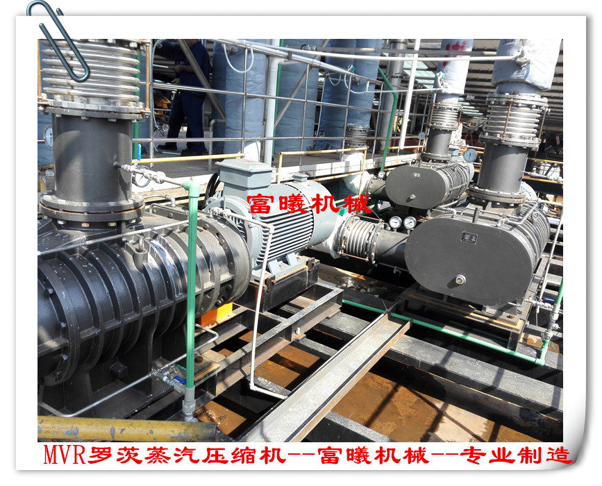 二、12T/H硫酸铵废水蒸发结晶系统装置核心设备采用富曦机械制造的MVR罗茨蒸汽压缩机使用现场