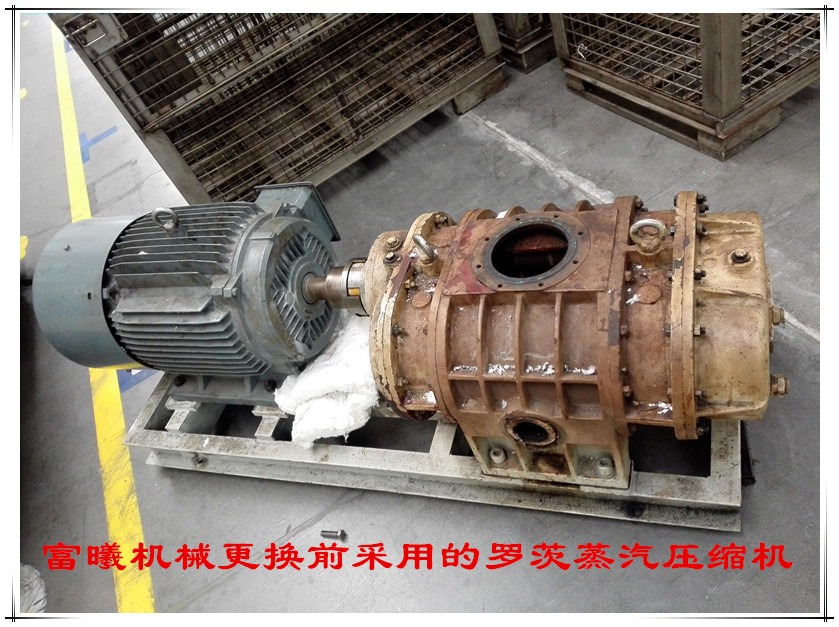 沈阳华晨宝马汽车有限公司原采用的山东某厂家的罗茨蒸汽压缩机,由于一直损坏业主要求更换MVR核心设备罗茨蒸汽压缩机,更换前现场采用的罗茨蒸汽压缩机: