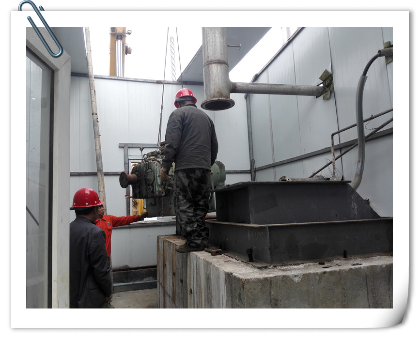 7、基础改造结束,准备把富曦机械制造的罗茨蒸汽压缩机吊装就位。