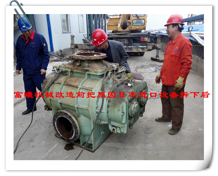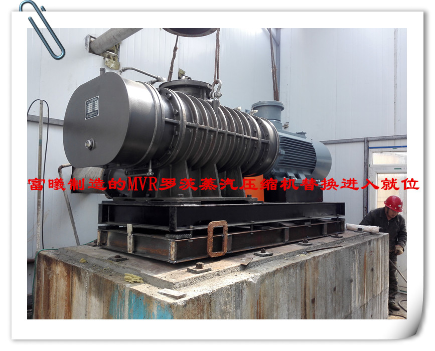 宜兴富曦机械有限公司是一家专业制造MVR罗茨蒸汽压缩机制造商,从2009年开始研发制造MVR罗茨蒸汽压缩机至今,在国内外MVR蒸发浓缩结晶系统项目上达400多例运行案例,也是国内比较早的MVR精加工罗茨蒸汽压缩机的研发制造商。目前已与国内多个知名做MVR蒸发系统装置的企业合作,富曦机械制造的MVR罗茨蒸汽压缩机已在各个领域得到广泛运行应用,在国内富曦机械已改造多个国外进口生产制造的罗茨蒸汽压缩机案例。以下是改造日本进口的罗茨蒸汽压缩机项目现场: